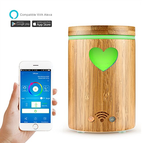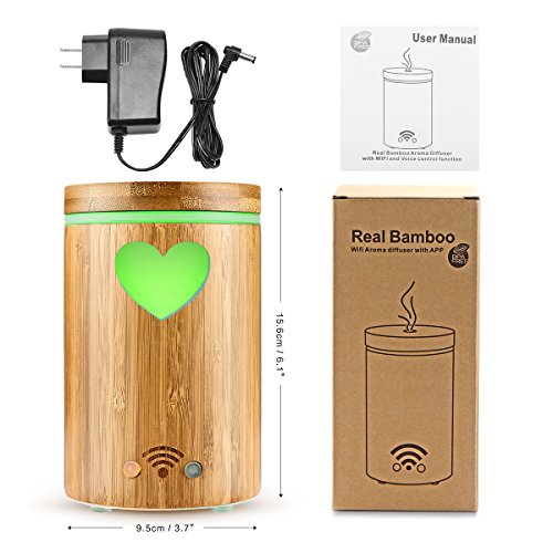Bamboo WiFi Smart Aroma Diffuser DDSKY 160ml Ultrasonic Essential Oil Diffuser Humidifier Mist Atomizer with Colorful LED Light APP Remote/Voice...