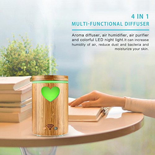 - NATURAL WOOD&SOPHISTICATED WORKMANSHIP--This lovely mist humidifier is made of high quality real bamboo and ground glass with sophisticated workmanship. It is not just an aroma diffuser, it is also a air humidifier, an air purifier, a led night light, and so on. It can increase humidity of air, reduce dust and bacteria and moisturize your skin.