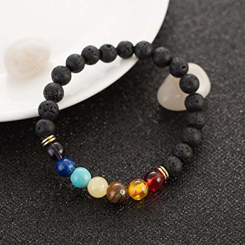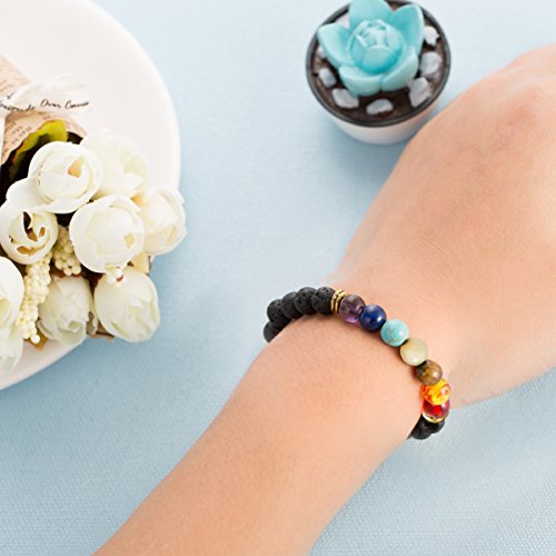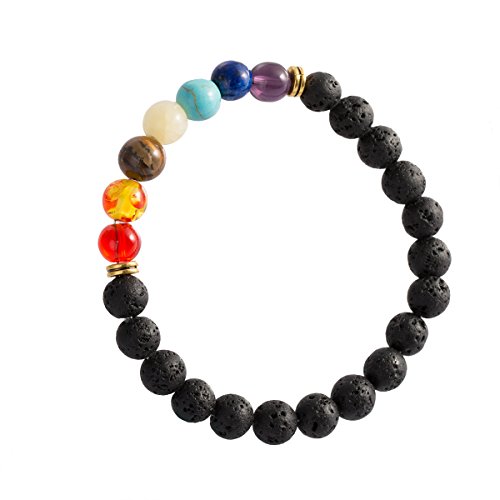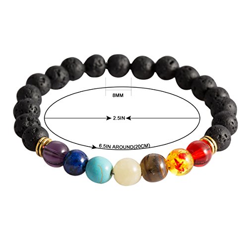 Natural Gemstone 7 Chakra Lava Stone for Oils Beads Strand Bracelet Aromatherapy Handmade Healing Rock Prayer Stone Bracelet (7 Chakra)