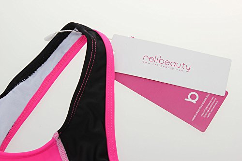 Binding : Misc. Product Description ReliBeauty Womens Color Block One Piece Bathing Suit This swimsuit's illusion splice design covers your tummy and create wonder silhouette. Besides, the hollow out back makes you more flexible in water. Shell:80% nylon and 20% spandex, lining:90% nylon and 10% spandex. Hand wash only. Imported. Notice: Because of different measuring methods, there do exist 1-2inches differences. Thank you for your understanding. Detailed Size Info(in inches) 0-2: cups:32A/B,34A chest/bust measurement:33-33.5 band measurement:27-28 waist measurement:25.5-26.5 hips:35-36 clothing length:26.3 suggested height:4'11'-5'3' 4-6: cups:32C,34B,36A chest/bust measurement:34-35 band measurement:28-29 waist measurement:27-28 hips:36.5-37.5 clothing length:27.1 suggested height:5'1'-5'5' 6-8: cups:32D,34C,36B,38A chest/bust measurement:35-36 band measurement:29.5-30 waist measurement:28-29 hips:37.5-38.5 clothing length:27.9 suggested height:5'3'-5'7' 8-10: cups:32DD,34D,36C,38B chest/bust measurement:36.5-37 band measurement:30.5-31.5 waist measurement:29.5-30 hips:38.5-39.5 clothing length:28.7 suggested height:5'5'-5'9' 10-12: cups:34DD,36D,38C,40B chest/bust measurement:37.5-38.5 band measurement:31.5-33 waist measurement:30.5-31.5 hips:40-41 clothing length:29.5 suggested height:5'5'-5'9' 12-14: cups:36DD,38D,40C chest/bust measurement:39-40.5 band measurement:33-34.5 waist measurement:32-31.5 hips:41.5-42.5 clothing length:30.3 suggested height:5'7'-5'10' 14-16: cups:38DD,40D chest/bust measurement:40.5-42 band measurement:35-36 waist measurement:33.5-35 hips:43-44 clothing length:31.1 suggested height:5'7'-6' 16-18: cups:40DD chest/bust measurement:42.5-43.5 band measurement:36.5-37.5 waist measurement:35-36.5 hips:44.5-46 clothing length:31.8 suggested height:5'7'-6' 0