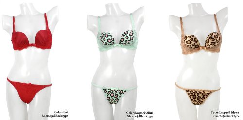 -. Title : グラマラス美乳ブラ&レーシーショーツセット レッド レオパルドミント レオパルドブラウン 3色組C65(M)