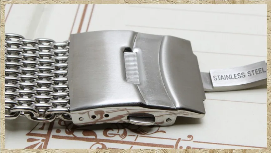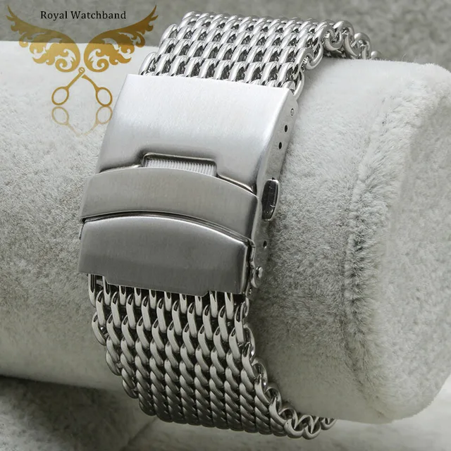 | [해외] 새로운 20 미리메터 22 미리메터 24 미리메터 교체 팔찌 실버 상어 메쉬 스테인레스 스틸 시계 밴드 스트랩 보안 Depolyment 버클 |