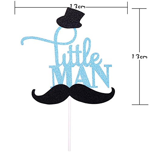 - Glitter blue with black mustache Little Man cake topper