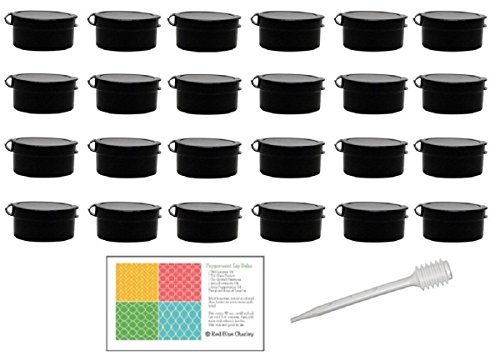 Black 1/2 oz Hinge Top Plastic Containers for Lip Balms, Samples, Pills (24 pk) with Pipette