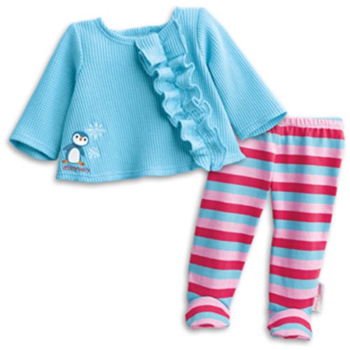 Sweet dreams are in store for Bitty Baby with these comfy penguin pajamas. This outfit includes a loose-fit thermal top with a sweet ruffle and penguin graphic, plus striped pajama pants.