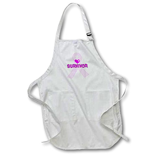 3dRose Pink Ribbon With The Word Survivor and A Heart and Diamond Effect - Medium Length Apron, 22 by 24-inch, With Pouch Pockets (apr_211126_2)