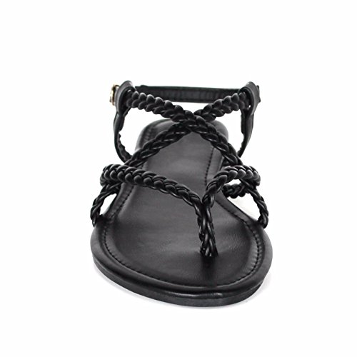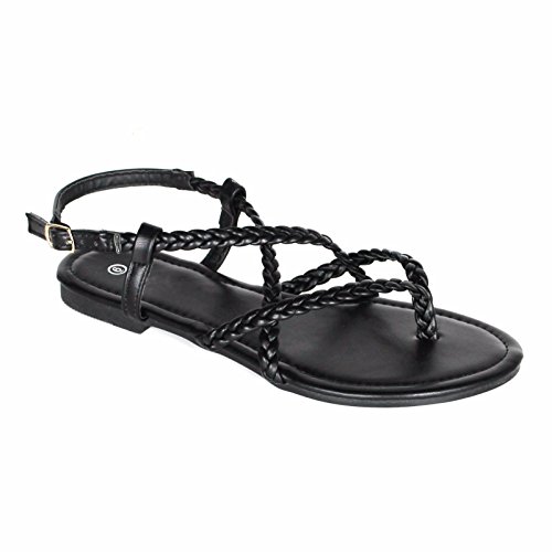 Women's Braided Strappy Gladiator Thong T Strap Flat Faux Leather Sandals