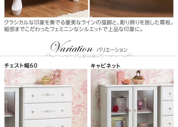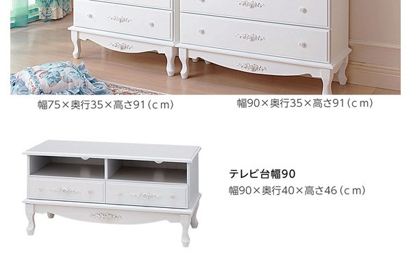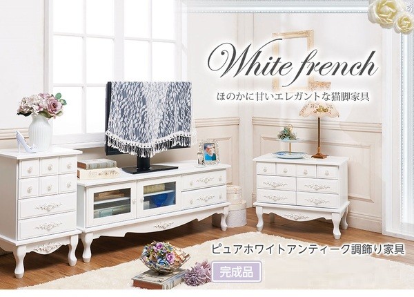【商品名】チェスト 【幅90cm】 『ピュアホワイトアンティーク飾り家具』 木製 アンティーク調/猫足