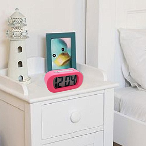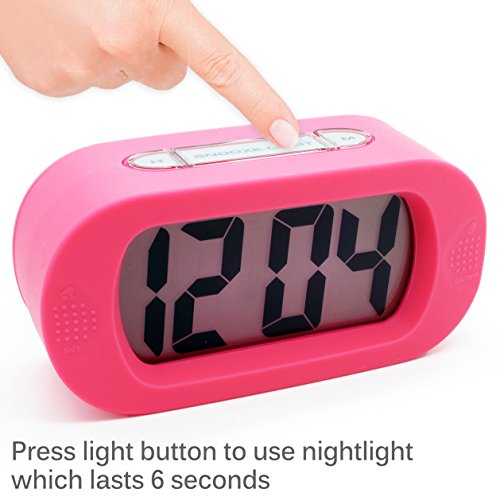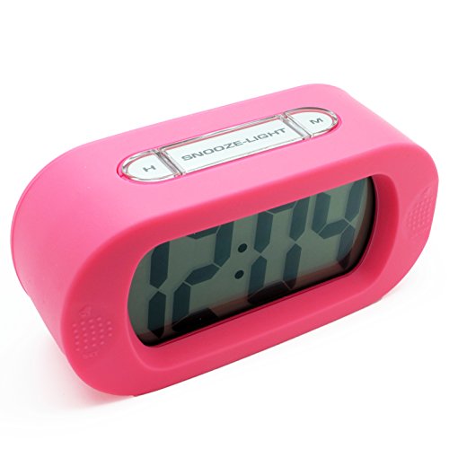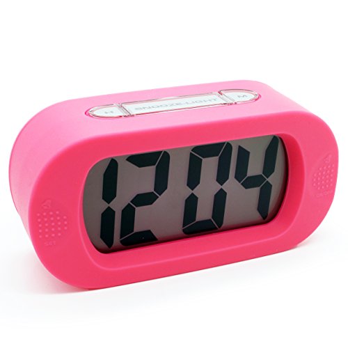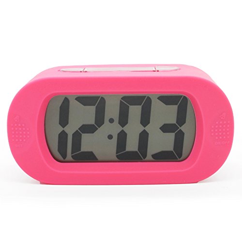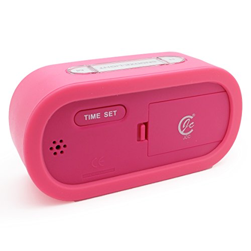 - Title : JCC Easy Setting Silicone Protective Cover Digital Silent LCD Large Screen Desk Bedside Alarm Clock with Snooze Light Function Batteries Powered (Pink)
