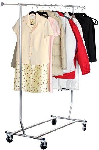 - Feature : Chrome plated collapsible salesman rolling garment rack / Commercial Grade - 250 Pound Load Capacity / Heavy Duty Steal, Chrome finish / Four heavy duty 4" casters / Extensible Rod from 51" to 75"