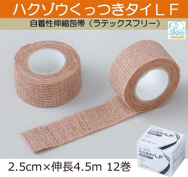 ラテックスとアクリルを含まず、また、通気性に優れ、肌に優しい包帯です。疎水性で水をはじきます。自着機能により粘着テープ等による固定が不要で、手で裂くこともできます。 |