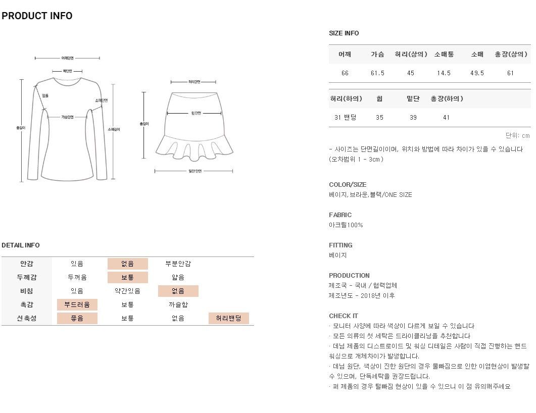 스커트는 일자핏을 제작되어 여성스러운 무드로 착용이 가능하구요