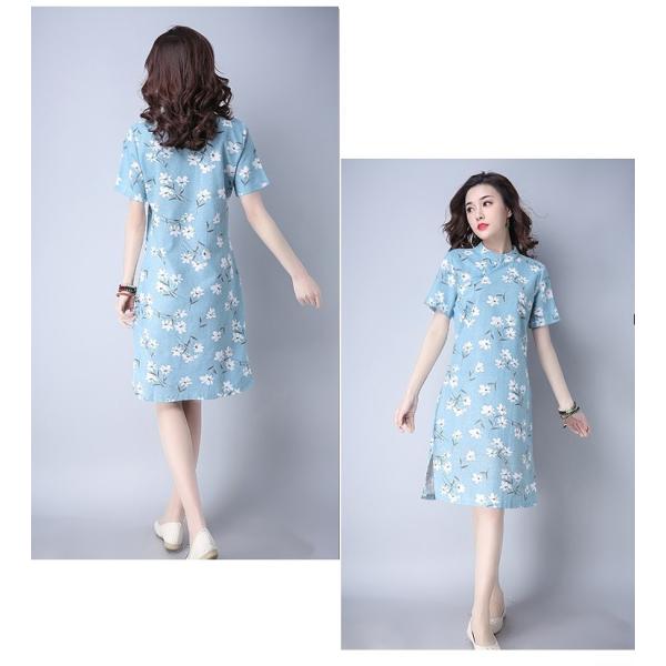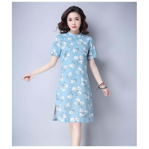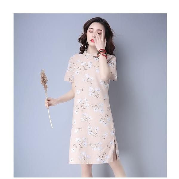 淡いカラーリングの花柄ワンピース。