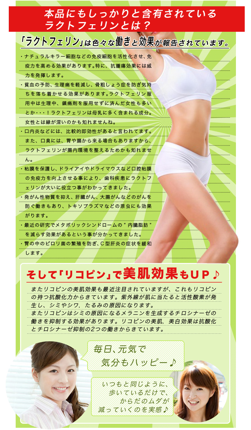 ラクトフェリンとリコピンは中性脂肪を気にされている方には特に人気あります成分です。