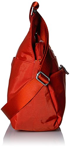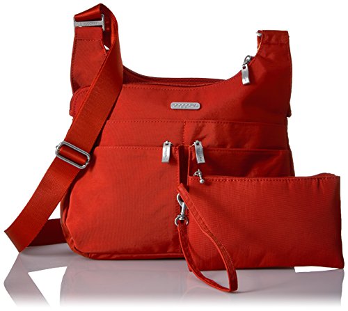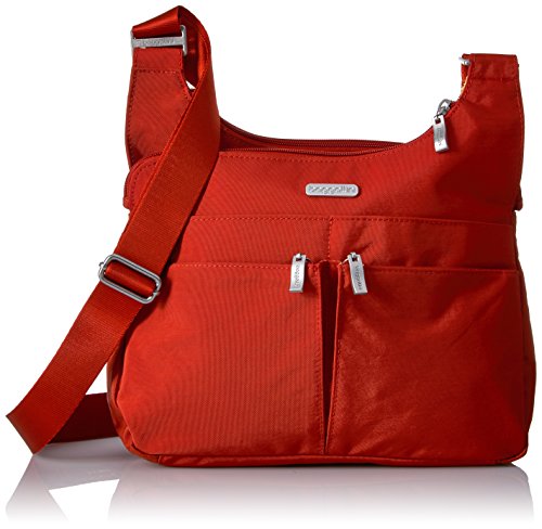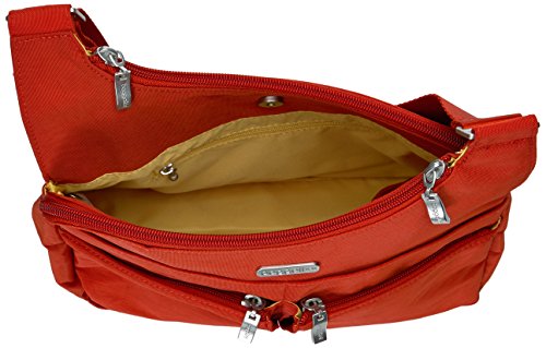 Zipped compartments that face different directions make organization easy. This crossbody bagg widens at the bottom, yielding surprising capacity. Exterior pockets hold newer cell phones.
