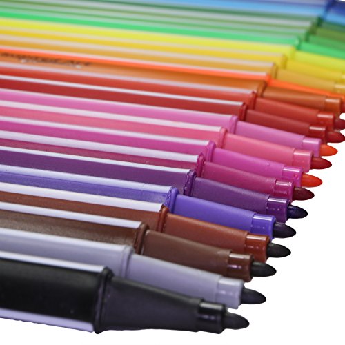 -. Feature : 24 ASSORTED VIBRANT COLOR MARKERS: Highest quality no bleed felt tip marker set with carrying case / PERFECT FOR COLORING BOOKS, SKETCHING & DOODLING: Use assorted markers for art classes, sketchbooks, writing & drawing / DOUBLE SIDED COLORED MARKERS: Features an ultra fine tip 0.4mm for detail sketch & broad 2mm felt bullet point tip / ERGONOMIC TRIANGULAR SHAPE: Triangular barrel creates the perfect grip for precise drawing, writing, coloring & shading / SATISFACTION GUARANTEED: If at anytime you are not happy with your markers, return for a full refund, no questions asked!