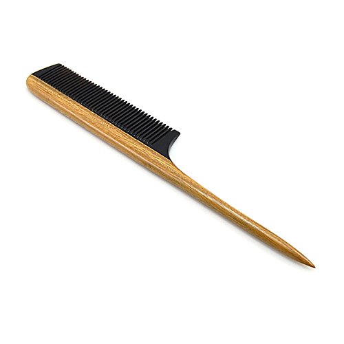 ZoCr Natural Green Sandalwood Handmade Comb - No Static Premium Quality Wood Hair Comb Detangling Comb With Thin and Long Teasing Tail Handle (Black Buffalo Horn and Sandalwood)