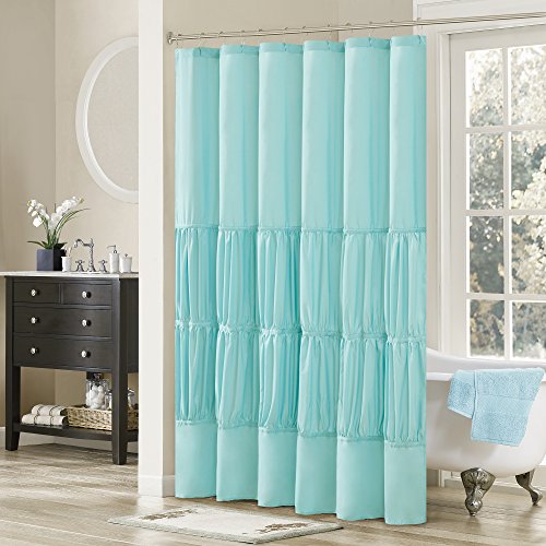 Comfort Spaces – Montana Shower Curtain – Aqua Blue – Ruched Pattern - 72x72 inches