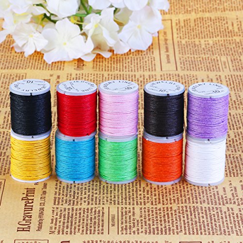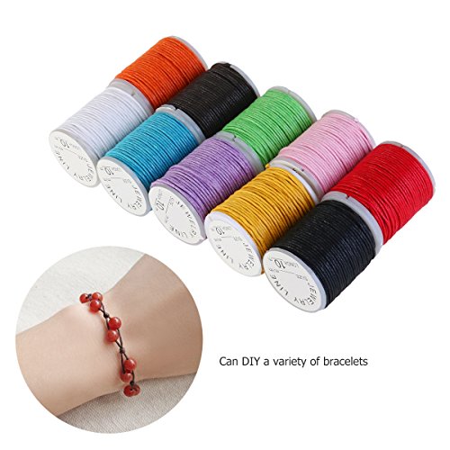 -. Feature : Color: Random color. Material: Durable soft waxed cotton. / Length: about 10 meters. Cord diameter: about 1mm. / Tightly woven and knotted into DIY bracelet, necklace, string beading, hand sewing, leatherwork, necklace and jewelry making. / Simple and practical design, and durable to use. / Set of items includes 10 rolls of simple and practical waxed cords ropes.