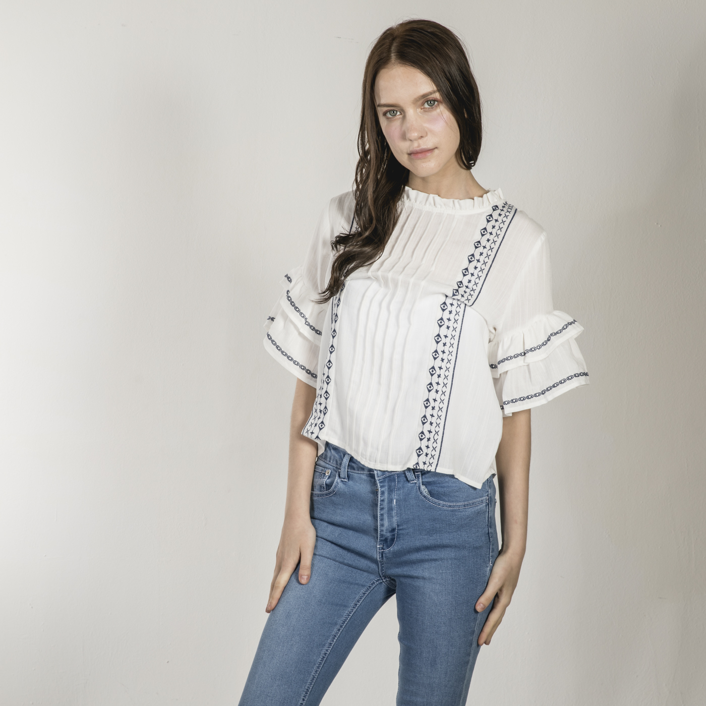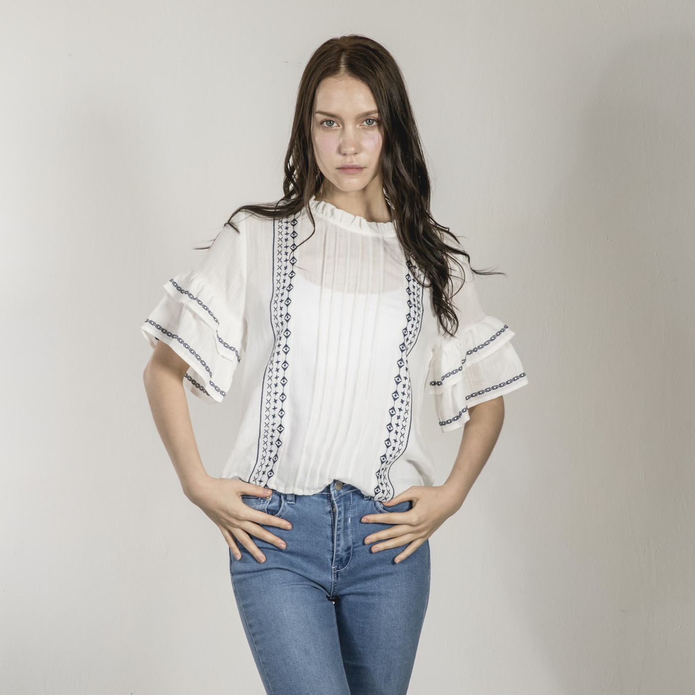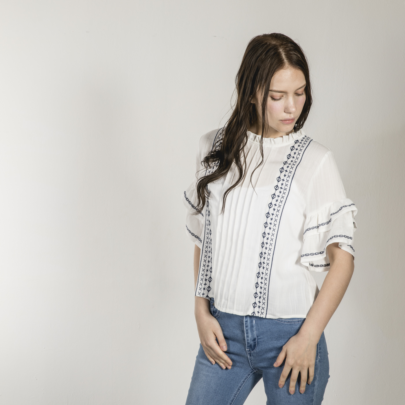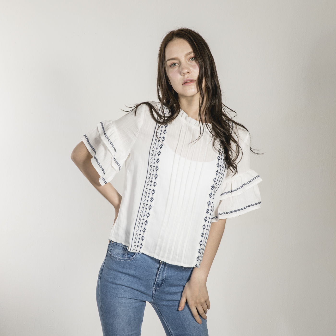 고급스런 자수와 소매의 디테일이 예쁜 블라우스입니다.