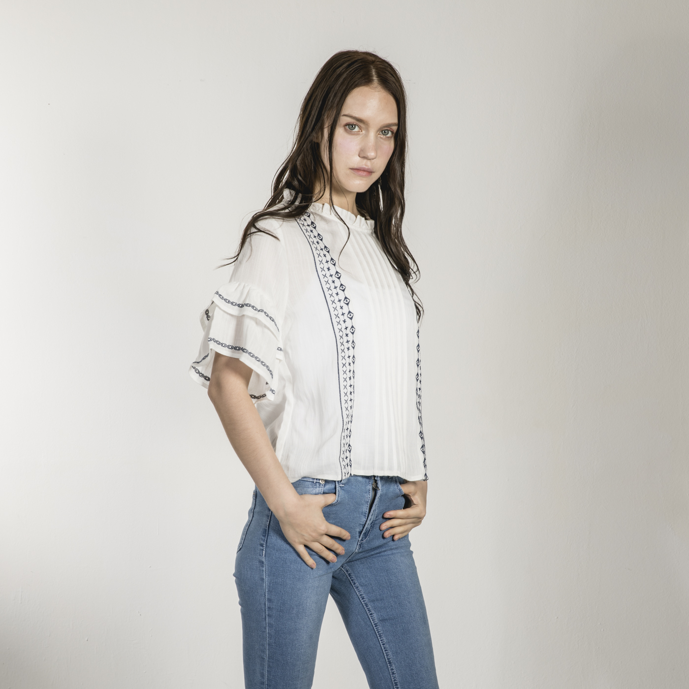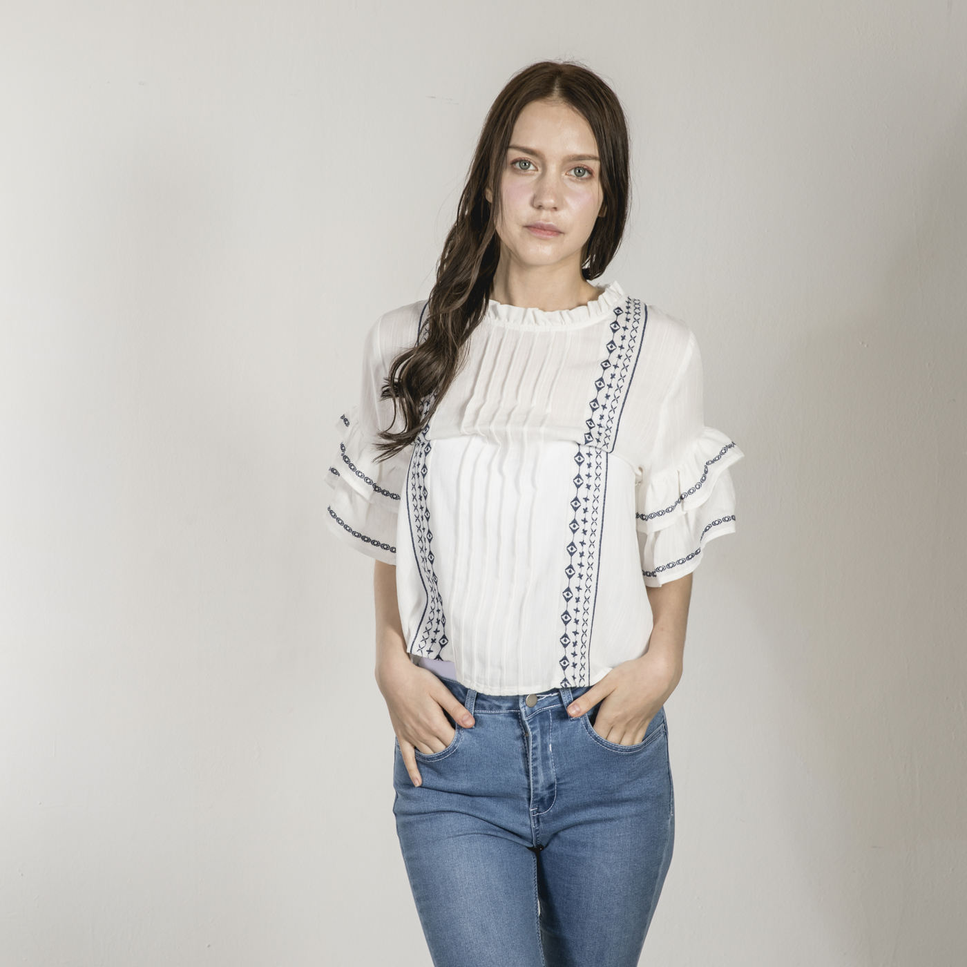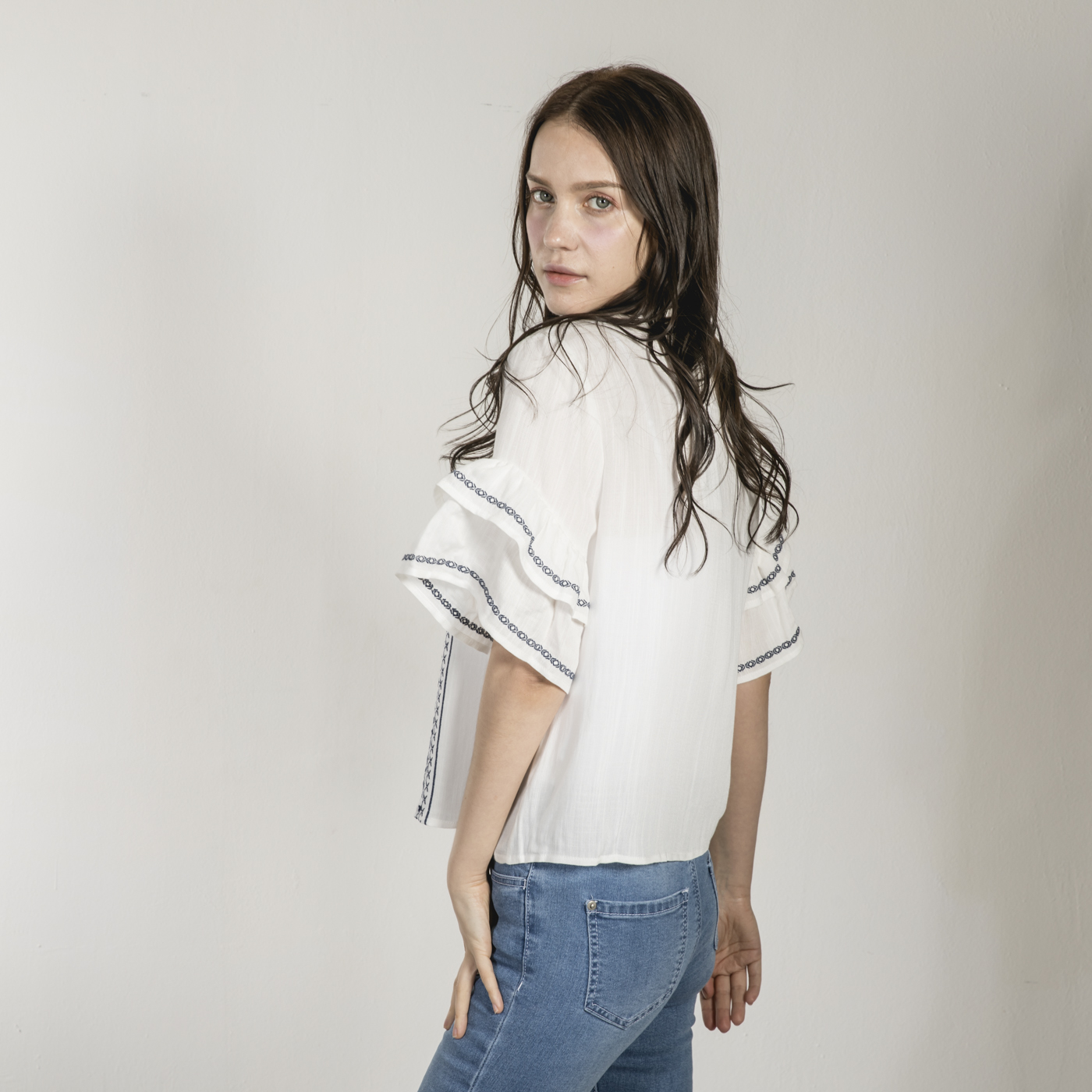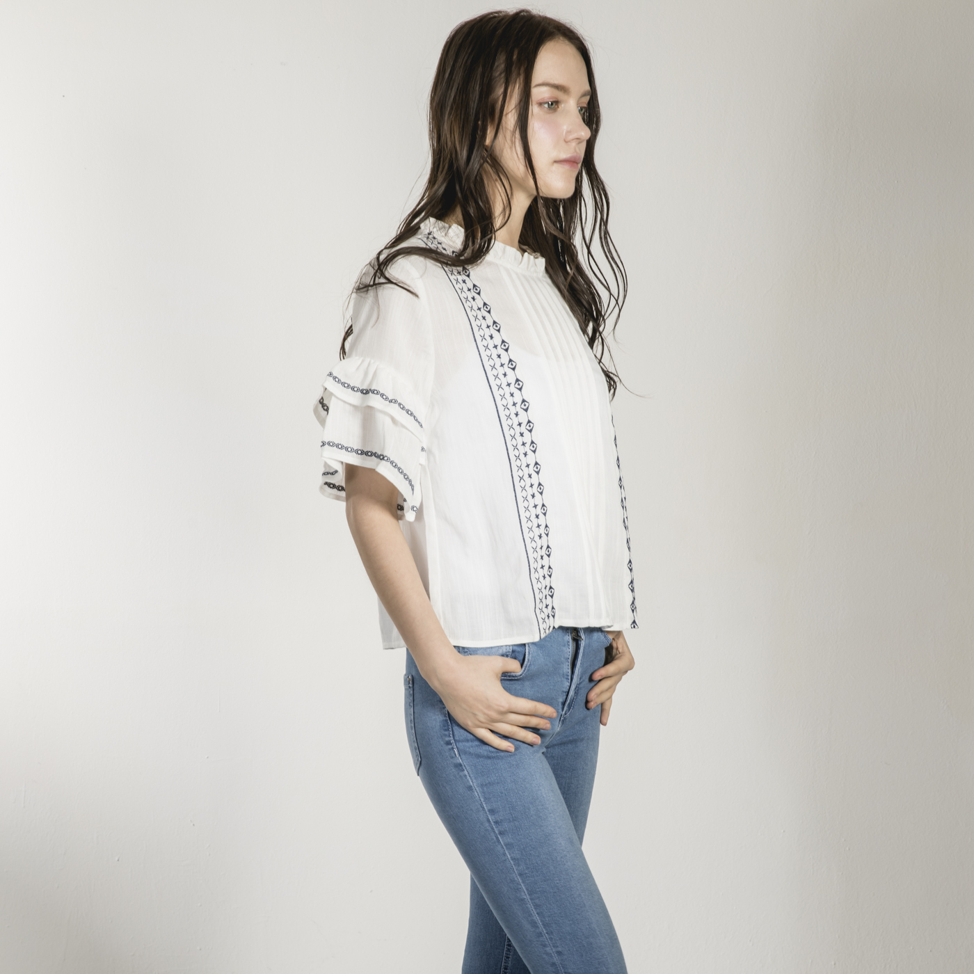 고급스런 자수와 소매의 디테일이 예쁜 블라우스입니다.