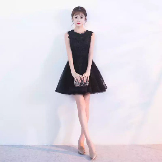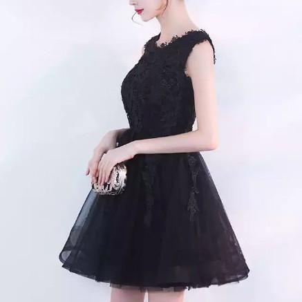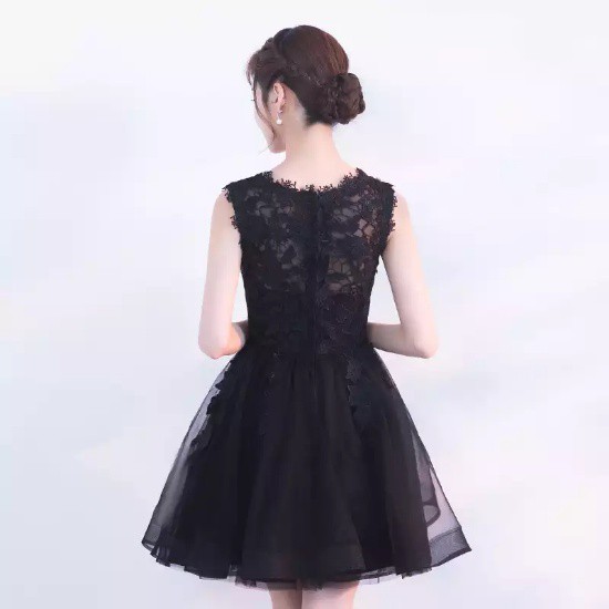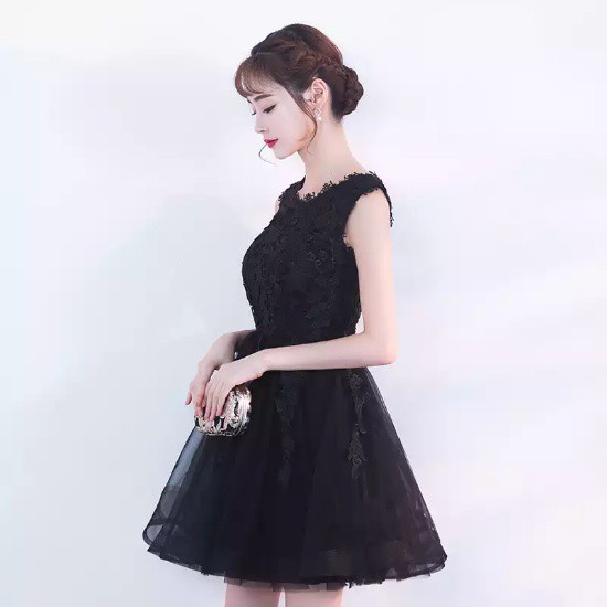 パーティードレス ミニ丈 ワンピース ブラック レース ノースリーブ チュール チュチュ 花柄刺繍 大人 可愛い 上品 お呼ばれ drgz2204