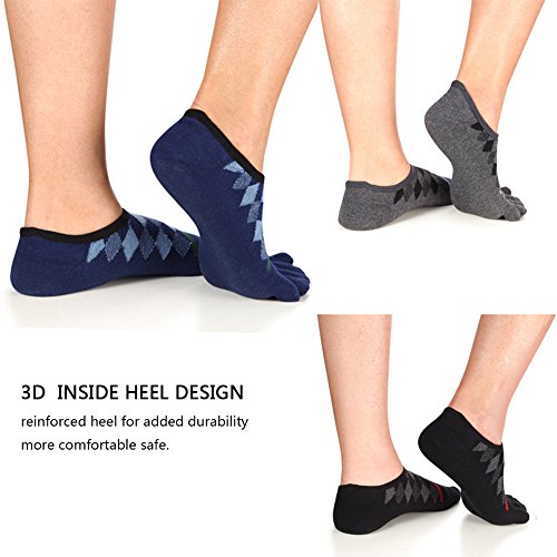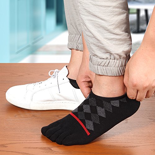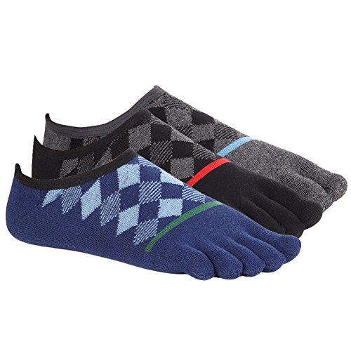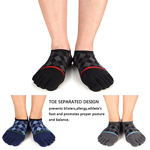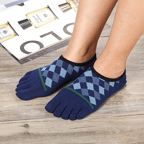 -. Binding : Apparel -. Brand : Binygo -. Color : Multicolored -. Department : mens -. EAN : 7700939872473 -. Feature : Material: 80% Cotton 20% Polyester.Using breathble high quality material provides you a comfortable ventilation experience. / ONE SIZE:Low Cut socks are made of stretch material and have great elasticity.Formidable resilience make sure that one size fits most (men's shoe size 5-10).Machine wash or hand wash in cold water. / FUNCTIONAL: Toe socks can help prevent those pesky blisters from forming in between your toes. And reduce friction from your toes rubbing against each other,and your toes rubbing against your shoe.Those socks are good heat resistance and moisture absorption to provide comfort and make the perfect present for hikers, outdoor walkers.We prepare 3 pairs low cut socks of black/blue/grey colors. / DESIGN:Ankle toe socks instep area with stylish diamond lattice and close to toe area with straight line make you special.Our Five finger socks with no show available for business,running or other occasion.Jacquard of instep argyle design cause extra fabric. / SATISFACTION GUARANTEE: We've made the best toe socks available and in a variety of wonderful colors, however, if you aren't completely with our toe socks, simply return them within 30 days for a full refund. -. IsAdultProduct : 0 -. MPN : 43190-443865 -. PartNumber : 43190-443865 -. ProductGroup : Apparel -. ProductTypeName : TOYS_AND_GAMES -. Size : One Size -. Title : Toe Socks No Show Athletic Running Cotton Five Finger Low Cut Business For Men 3 Pairs