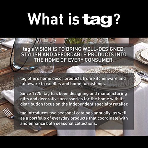 ABOUT TAG: Since 1975, tag has been designing and manufacturing gifts and decorative accessories for the home. Our vision is to bring well-designed, stylish and affordable products into the home of every consumer. Any room in the home is fair game for tag! Our collections include an array of everyday products that sell 12 months of the year as well as a mix of seasonal products that support festive holidays and all four seasons.