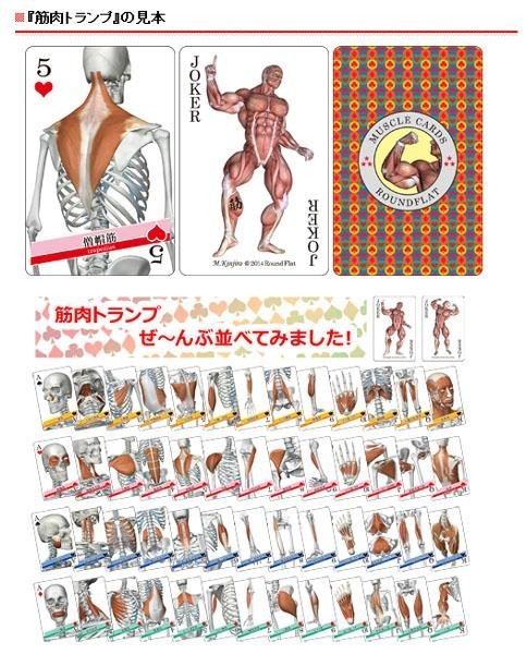 | 筋肉のCGイラストが描かれたトランプです。カードの下部には筋肉名が日本語と英語が記載されています。遊びながら自然に筋肉の名称を覚えることができるので、筋肉の勉強をしているあなたにオススメです☆ |