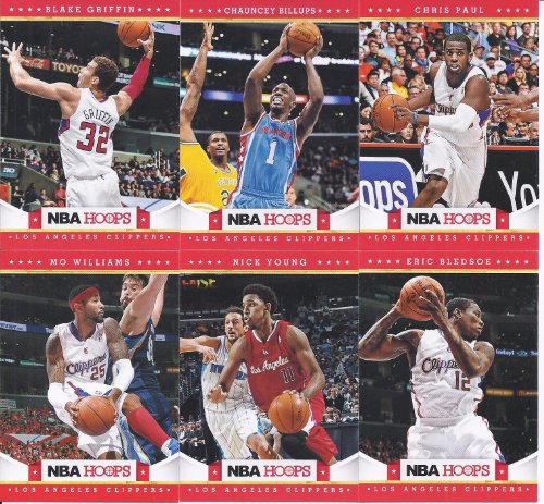 This is a brand new 2012 / 2013 Los Angeles Clippers Hoops Basketball Factory Sealed 10 Card Team Set with Blake Griffin, Chauncey Billups, Chris Paul, Mo Williams, Nick Young, Eric Bledsoe, DeAndre Jordan and Caron Butler.
