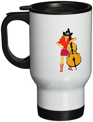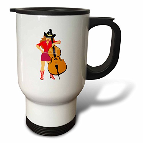 3dRose Bass Upright Player Cowgirl Red Travel Mug, 14-Ounce