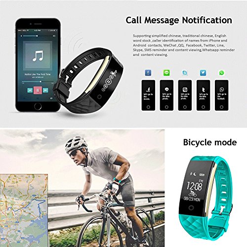 -. Feature : 【AUTO-SLEEP MONITORING HEART RATE】Automatically all-time tracking of sleep without manual operate,and alarm clock vibrates to awaken you gently in the morning without disturbing.Dynamic HR sensor 24h Real-Time continuous monitoring your heart rate.(Only for your reference to adjust your exercise,NOT for medical use.) / 【MULTI FUNCTION】APP:Smart Wristband 2.ALL-day activity Tracking like Pedometer,distance,calorie,GPS movement Trajectory,including Camera/Music/Video remote control,and intellgent AlertNotification function.Powful built-in rechargeable battery can be used about 14 days.Excellent hepler and accompany for your healthy and life. / 【BICYCLING TRACKING】The wristband will response and record your cycling time,map your routes,and consumed calories upon cycling Coordinated with the APP outdoor cycling function Once the cycling mode is lauched.(when your phone is nearby) / 【SENIOR WATERPROOF LEVEL】Ugrade waterproof and dustproof grade can not only keep the gain dust corrosive matterials like cosmetics and sweat etc in daily,the wristband even not be damaged by washing your hands or getting caught in the rain Swimming,taking a cold shower.(NOTE:Swimming depth not over 1m,time not over 30mins) / 【GUARANTEE QUALITY】COOLEAD offer you 100% brand NEW products and provide 1 year warranty for all the products we are selling on Amazon.Please feel free to contact us if you have any usage problem.