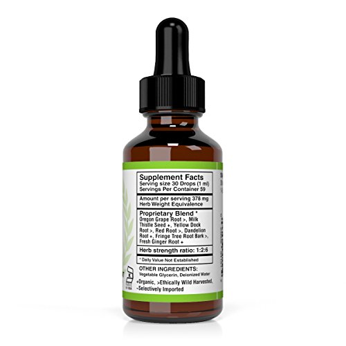 AMAZINGLY EFFECTIVE BLEND to cleanse and rid your liver & blood of toxins - Oregon Grape Root, Milk Thistle Seed, Yellow Dock Root, Red Root, Fresh Dandelion Root, Fringe Tree Bark and Fresh Ginger Root
