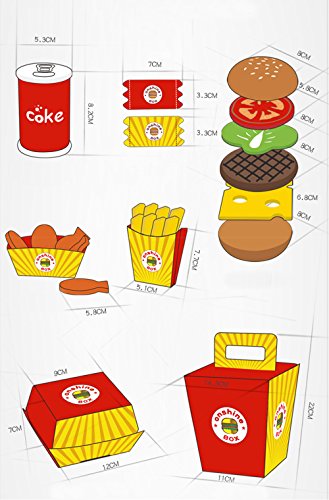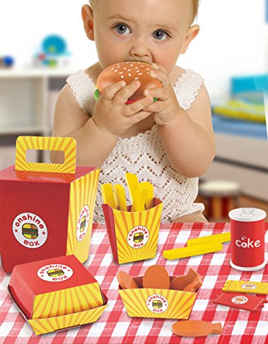 D.O.T Hamburgers and fry food toy set,help your baby creating new burger combinations and distributing fries and tenders into their boxes refines fine motor skills while also teaching counting and matching.