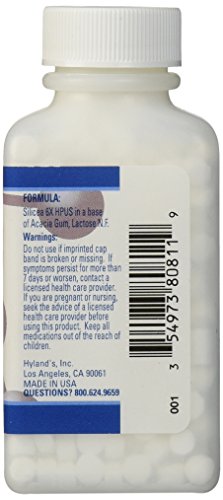 Hyland's Cell Salts #12 Silicea 6X Tablets, Natural Relief of Skin Eruptions, Brittle Hair Nails, 500 Count Temporarily relieves the symptoms of Skin eruptions, brittle hair and nails NATURAL REMEDIES SINCE 1903? Hyland’s has been producing homeopathic medicines since 1903. Made with natural ingredients and made in the United States. Hyland’s products contain no artificial flavors, dyes or parabens. This product works to stimulate the body’s own natural healing process. FDA COMPLIANT MANUFACURING Always read and follow the label directions when using Hyland's products. The uses for our products are based on traditional homeopathic practice. Hyland’s products follow the manufacturing and quality practices outlined in the Homeopathic Pharmacopoeia of the United States. Hyland’s operates in full compliance with the FDA standards for manufacturing, safety and labeling. Hyland's products have not been reviewed by the Food and Drug Administration. All ingredients are tested upon receipt to ensure potency and safety. Hyland’s Facilities use the most up-to-date equipment and environment to guarantee purity and quality. SAFE AND RELIABLE Homeopathy is a safe effective system of medicine with fundamental principles for selection, application and manufacture. Homeopathy’s potency preparations (6X, 30X, 30C) make dosing safe and stimulating to the body’s own healing properties. Hyland’s quick-dissolving sublingual tablets are safe, effective and completely free of Aspirin, Acetaminophen or Ibuprofen. Homeopathic preparations dilute and invigorate the source, making doses non-toxic and safe to take alongside other medications without contraindications or known side effects. 0 |