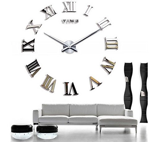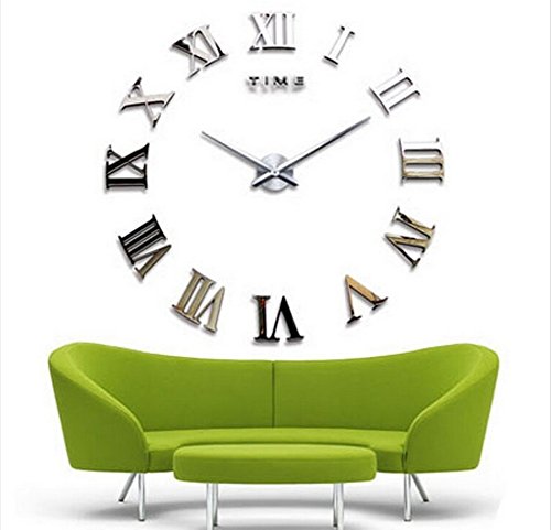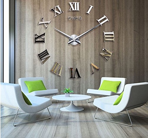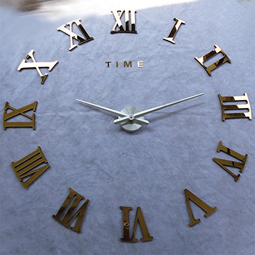 -. Title : Alrens_DIY(TM)Time Letters Roman Numerals Luxury Large Size Modern DIY Frameless Quartz 3D Large Big Mirror Surface Effect Wall Clock Oversized Clock Removable Home Decoration Living Room Décor Wall Sticker Decal Meeting Room Office Creative Art Watches Decor-3 Colors