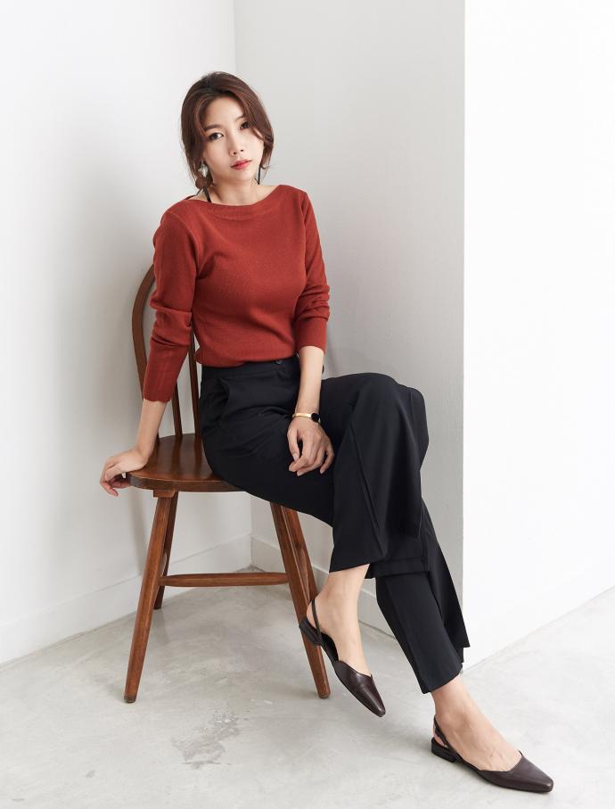 Boat Neck Knit T-shirts Daily coordination Nourishment fashion V-Neck Pitch Neat autumn