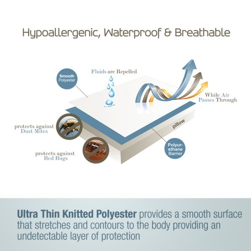 Queen Size SafeRest Classic Plus Hypoallergenic 100% Waterproof Pillow Encasements - Vinyl, PVC, and Phthalate Free - Includes Set of Two