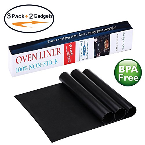 Cosy Life Set of 3 Large Oven Liner 16.25 x 23 Inch, Teflon Non-Stick Oven Mat - Black