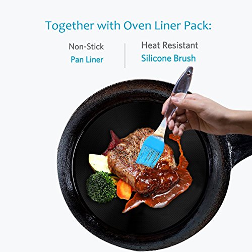 What You Get: Set of 3 PCS Large Teflon Oven Liners (23" x 16.5"/Fit 30" ovens), Pan Liner, Silicone Brush and Oven Liner Instruction.
