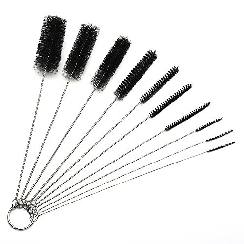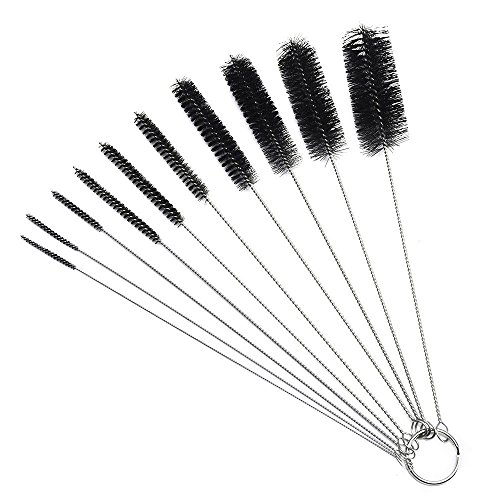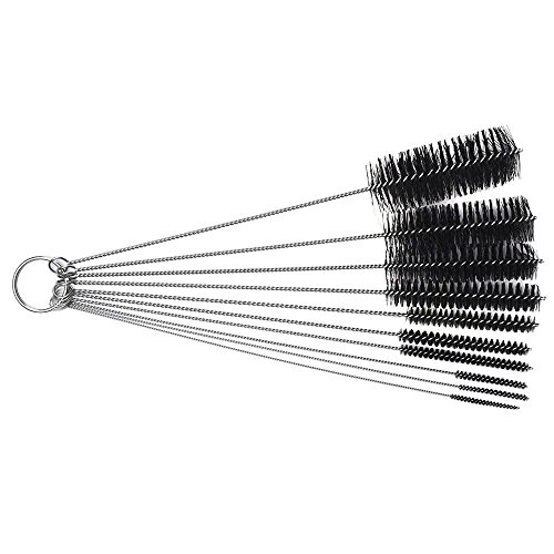 -. Feature : 1 set of 10 brushes with varying diameters on a detachable key ring / All Length: 21 cm (8.2 inches) / Brush Diameters: 2, 3, 4, 5, 6, 8, 12, 16, 20, and 24 mm (1/16, 1/9, 1/6, 1/5, 1/4, 1/3, 1/2, 2/3, 3/4, and 1 in) / Made of stainless steel and nylon bristles / Common uses include: cleaning Drink Straws, Hummingbird Feeders, Airbrushes, Paint Spray Guns, Tattoo Equipment, Small Nozzles, Keyboards, Sewing Machines, Carburetor Passages
