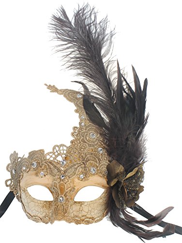 -. Binding : Toy -. Brand : RedSkyTrader -. Department : womens -. Feature : Made of Paper Mache - Accented with a Lace and Feathers / Mask Is about 7 1/2" Wide and 9" Tall with Lace Crown / Feathers Are about 13" Tall - May Vary Depending upon Feathers / Painted in Vintage Off-white / Full Sized - Will Fit Most Adults -. PackageQuantity : 1 -. ProductGroup : Apparel -. ProductTypeName : TOYS_AND_GAMES -. Title : RedSkyTrader Womens Lace Venetian Mask - Feathers One Size Fits Most Off-White