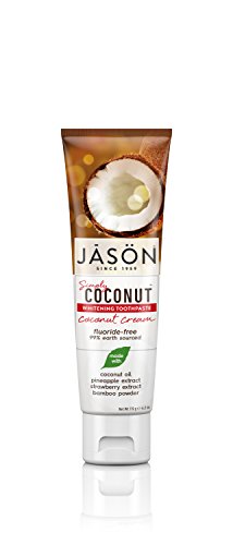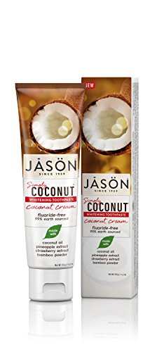 JASON Simply Coconut Toothpaste is 99% earth-sourced and fluoride-free, offering the wholesome combination of Virgin Coconut Oil with healthful minerals, extracts or oils to deliver oral care benefits for all needs. Virgin Coconut Oil with brightening Bamboo Powder, Strawberry Extract and Pineapple enzyme help give your teeth a stain-free sparkle. JĀSON brand believes in the power of nature's ingredients to improve everyday wellness. We were pioneers of safer, wholesome personal care, and we continue to harness the earth's bounty of botanicals and essentials for blends that refresh and restore. Wellness is our second nature, and it has been since 1959. With our JĀSON Code of Honor we promise to: 1) Select safe, gentle and effective ingredients; 2) Test every formula to ensure safety and efficacy; 3) Not test on animals (love and adore them); 4) Innovate and improve continuously. From generation to generation, JĀSON products have stayed true to the founder's commitment and true to you. We are dedicated to setting everyone on the path of safer personal care.Feature