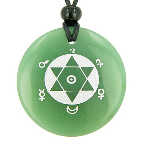 -. Feature : Best Amulets® Collection. King Solomon Seal of Success Amulet Green Quartz Gemstone Circle Good Luck Powers Pendant NecklaceKing Solomon Seal of Success Amulet Green Quartz Pendant Necklace / Gemstone Circle Size: 2 inches (50mm) / Made from Natural Gemstone and may have some natural specks making your Amulet or Talisman very unique and special / Each Magic Symbol is Engraved on top of the Gemstone Circle / Comes with Adjustable cord, and adjusts from 15 inches up to 24 inches