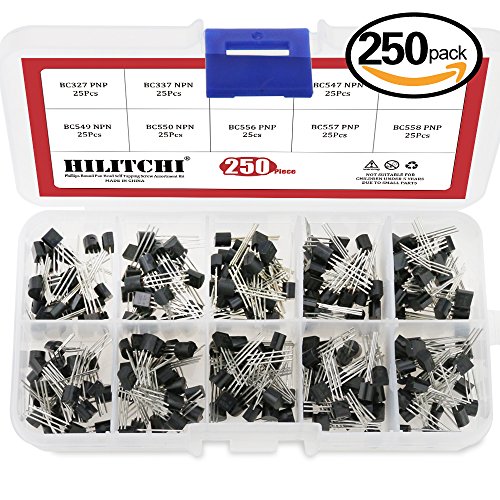 Hilitchi 250-Piece 10 Values NPN PNP Power General Purpose Transistors Assortment Kit - BC327-BC558