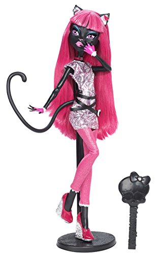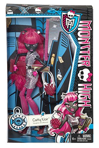 -. Feature : Catty Noir, a Super Monster Star, Has Enrolled in the Scare Mester at Monster High / She Looks Fashionably Fierce in a Sleek Silvery Top with Pink P.R.Int and Pink Shimmery Leggings / A Black Crisscross Belt and Pink Collar Are the Cat's Me-owww / Killer Accessories Include a Pink Skullette School Bag and To-die-for Matching Platform Shoes / Includes Doll, a Matching Folder, Signature-style Brush, Doll Stand and Character-specific DiaryAP Style Title Case