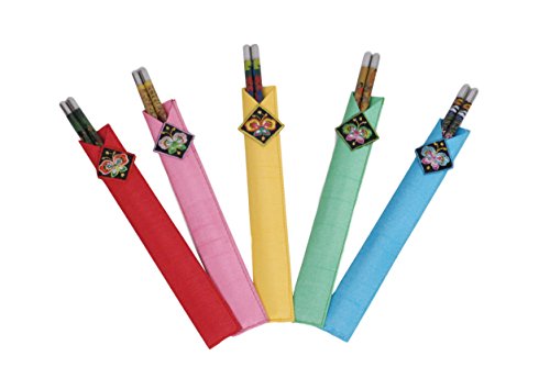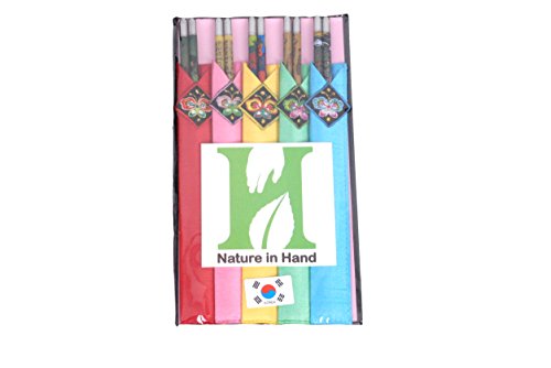 Nature In Hand Handmade Korean Chopstick Gift Set with Silk Cover-5 Count