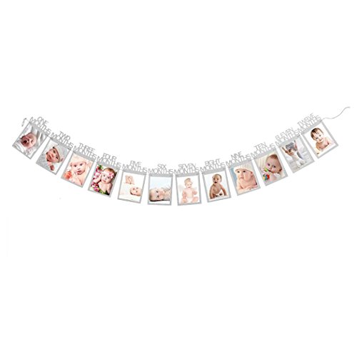 (Inkach)/Baby Stationery/Stationery Sets/DIRECT FROM USA/Inkach Photo Wall Hanging Picture Frames 1-12 Month Kids Birthday Photo Banner Display (Silver)