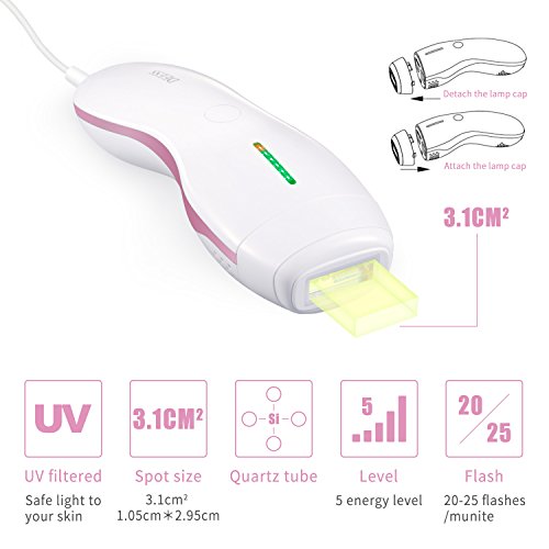 - Clinically proven IPL light, safe, effective and painless. Auto power-off in 5 minutes’ lay up.