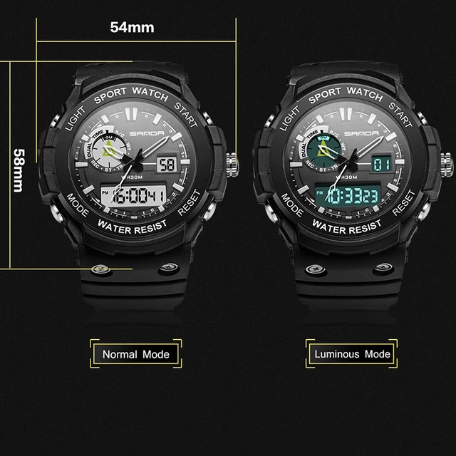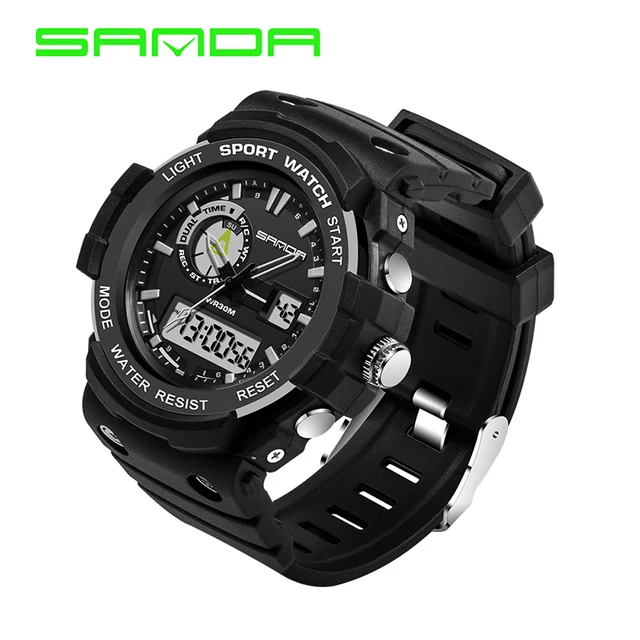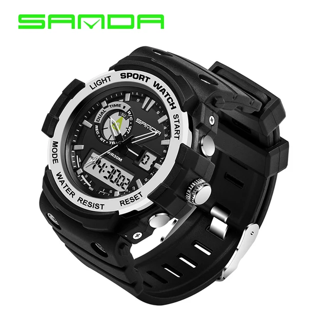 | [해외] 산다 남성 스포츠 시계 패션 캐주얼 남성 시계 디지털 아날로그 알람 방수 군사 남자 손목 시계 Montre 옴므 |